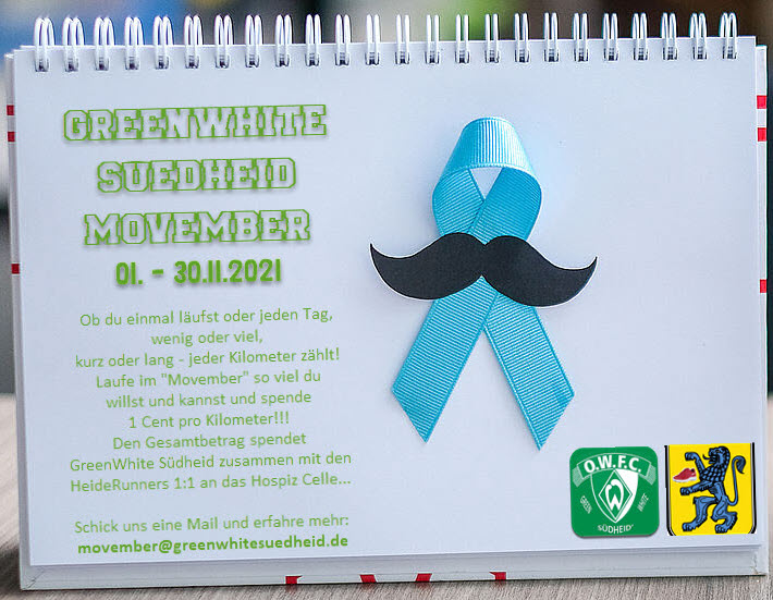Zusammen mit den HeideRunners Celle veranstaltet GreenWhite Südheid den Spendenmarathon "GreenWhite Südheid Movember" - Ziel ist für jeden gelaufenen Kilometer einen Cent von den Teilnehmerinnen und Teilnehmern einzusammeln und den Gesamtbetrag an das Hospiz Celle zu übergeben - macht mit!!!